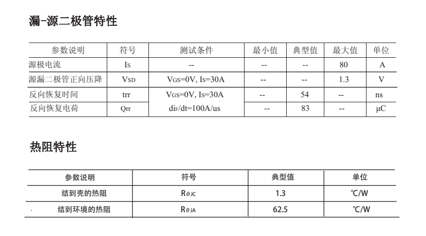 最大脈沖漏極電流(IDM ):480(A);靜態導通電阻(typ):VGS=10V則為2.95mΩ;反向傳輸電容:97pF。